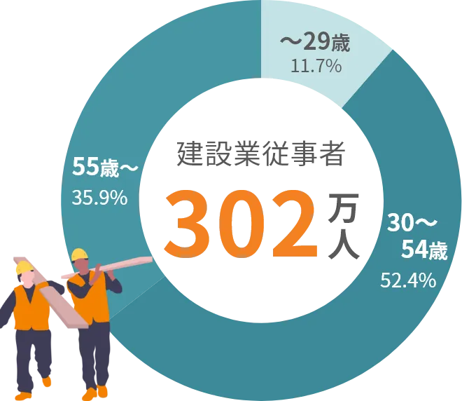 国内の建設現場で技術的作業を⾏う従事者(通称:職⼈)は、300万⼈を超えています。「30−50代男性」「建設現場で働く⼈」など、明確なターゲットに直接アプローチが可能です。