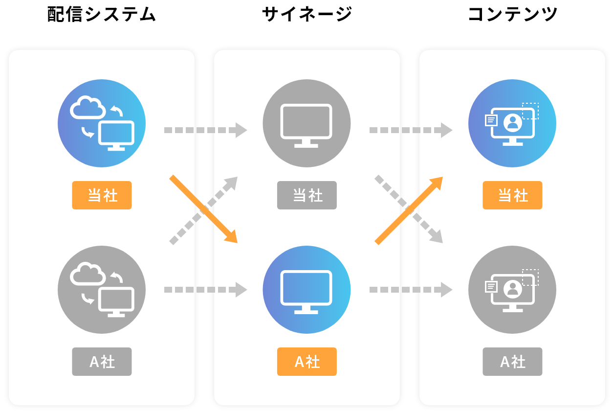 サイネージを導⼊するには、サイネージや配信システムの⽉額レンタル料や設置・撤去費などのコストが発⽣していました。そこで従来のサイネージレンタルサービスに「広告配信」を組み合わせることで、サイネージ導⼊にあたって、お客様が抱える「導⼊コスト」や「導⼊効果」といったさまざまな課題に対し、新たなソリューションサービスで解決いたします。