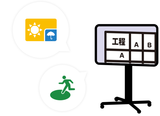 現場毎に設定できる機能を追加したコンテンツもご用意。現場毎のルールや変化に対応できる仕組みをとっています。また、汎用的に使用できる安全喚起や情報セキュリティに関するポスターコンテンツも各種取り揃えています。