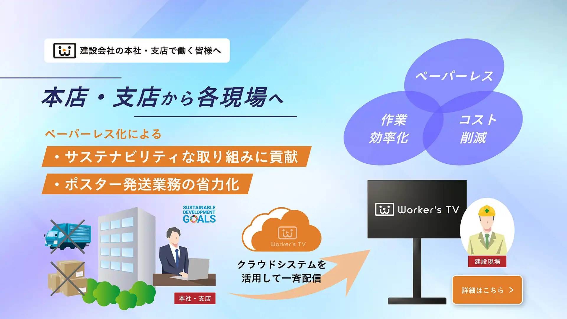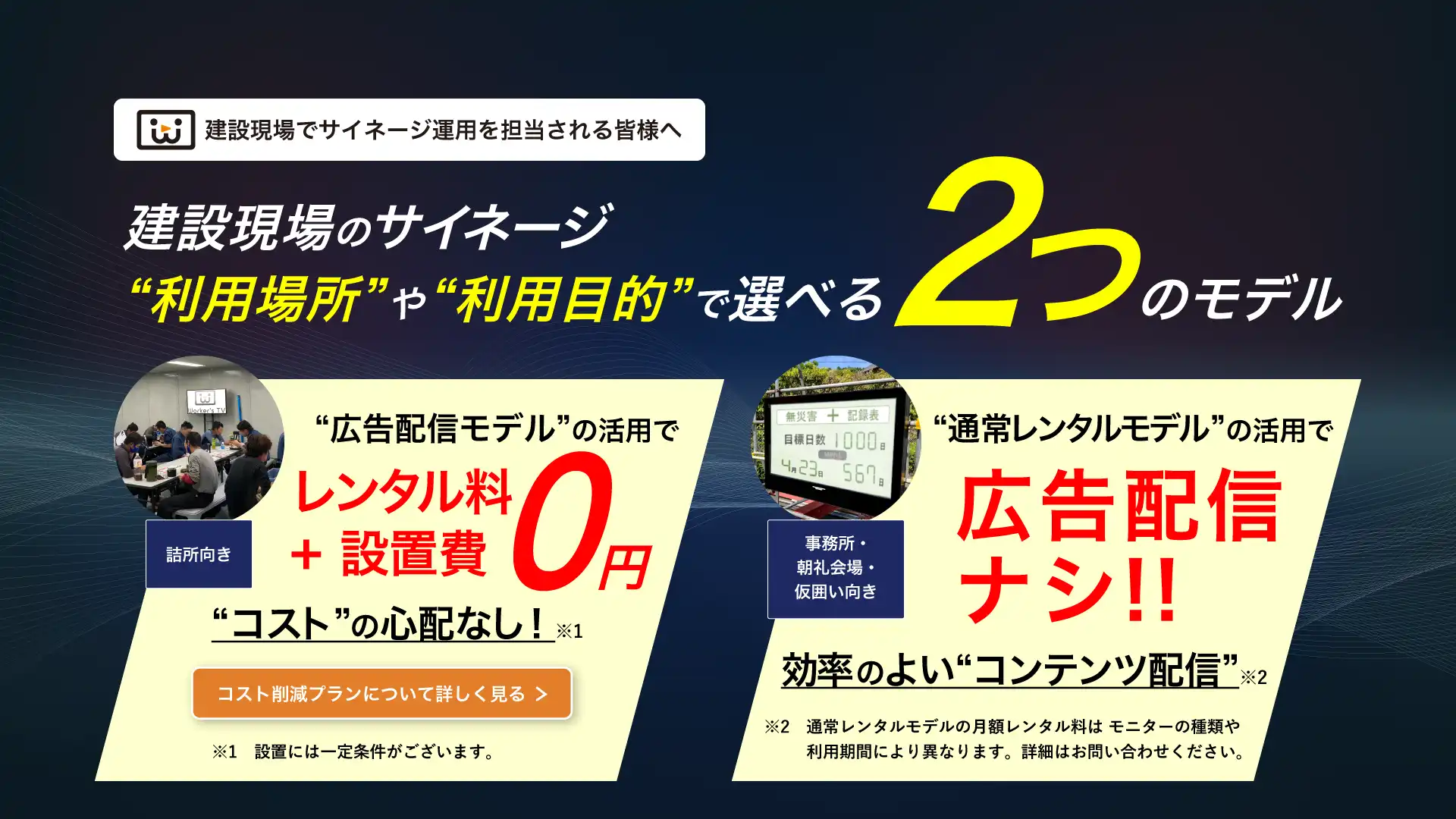 Workerʼs TVでは、詰所サイネージに当社オリジナルのコスト削減プランを展開しております。
