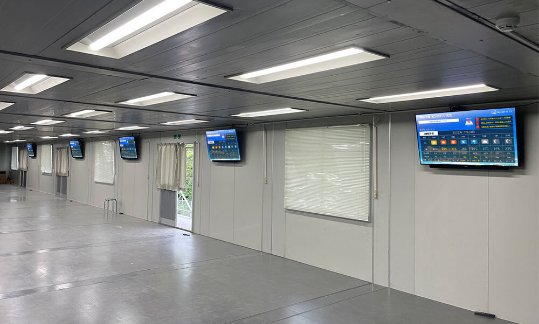 建設現場では「朝礼会場」「仮囲い」「詰所」「事務所」など、あらゆるところでデジタルサイネージが活用されるようになりましたが、利用シーンによっては、 「見えにくい」「聞こえにくい」という課題があります。映像や音響の設備を整えることによって、これらの課題解決や、ランニングコストの削減効果も期待できます。