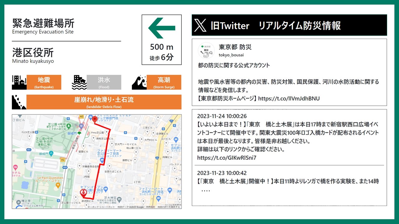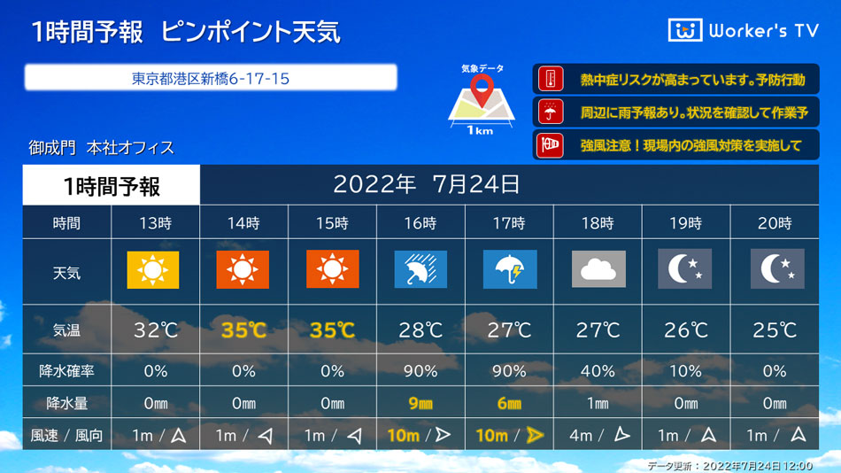 地点登録や表示コメントなど、現場毎に仕様をカスタマイズできるWeb型コンテンツとなっており、リアルタイムでの情報更新が可能です。コンテンツ内容や表示方法に「動き」があるので、サイネージの視認性向上が図れます。